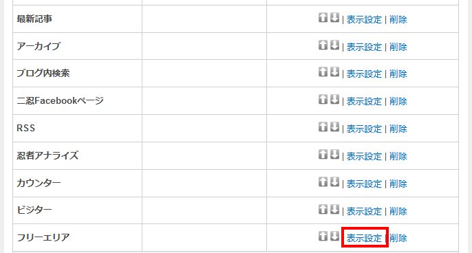 フリーエリアの表示設定をクリック